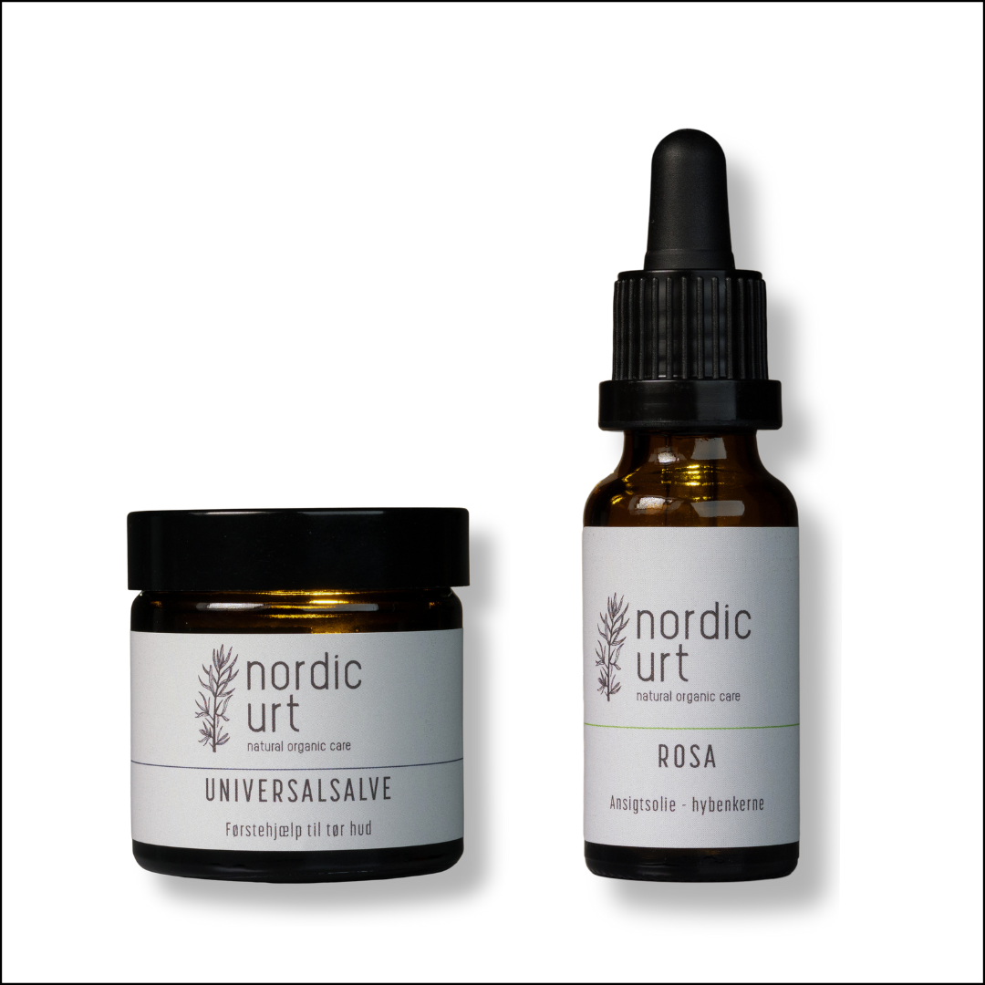 I vores familie har vi altid brugt en beskyttende og helende salve fra Bratbjergmandens store bagkatalog, når huden og læberne har trængt til lidt ekstra kærlighed og pleje. Vi har taget netop denne salve og moderniseret den, så den lever op til vores krav om en bæredygtig og miljøvenlig Universalsalve. Kombinerer du Universalsalven med hudplejeprodukternes Rolls Royce; nordic urt Rosa - Ansigtsolie med hybenkerne har du kittet til at komme igennem det danske vejr uden irriteret og tør hud. Hybenkerneoliens fantastiske egenskaber gør nemlig olien til din foretrukne ven, når det gælder om at bibeholde en stærk, elastisk og hydreret hud både på overfladen og i dybden.